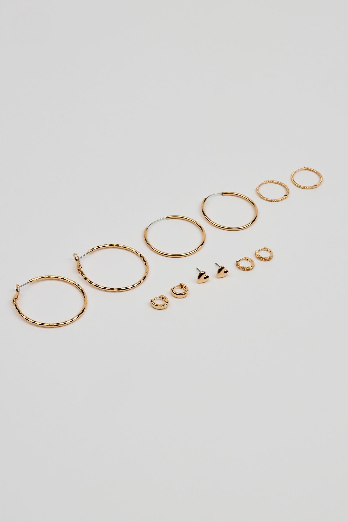 6 Pack of Mini Studs & Thin Hoop Earrings Yellow women – High fashion just called they want their earrings back. Features 6 sets of sculptural hoop and stud earrings Post-stud and latch closure Metal costume jewelry All jewelry is nickel, lead, and cadmium free Imported