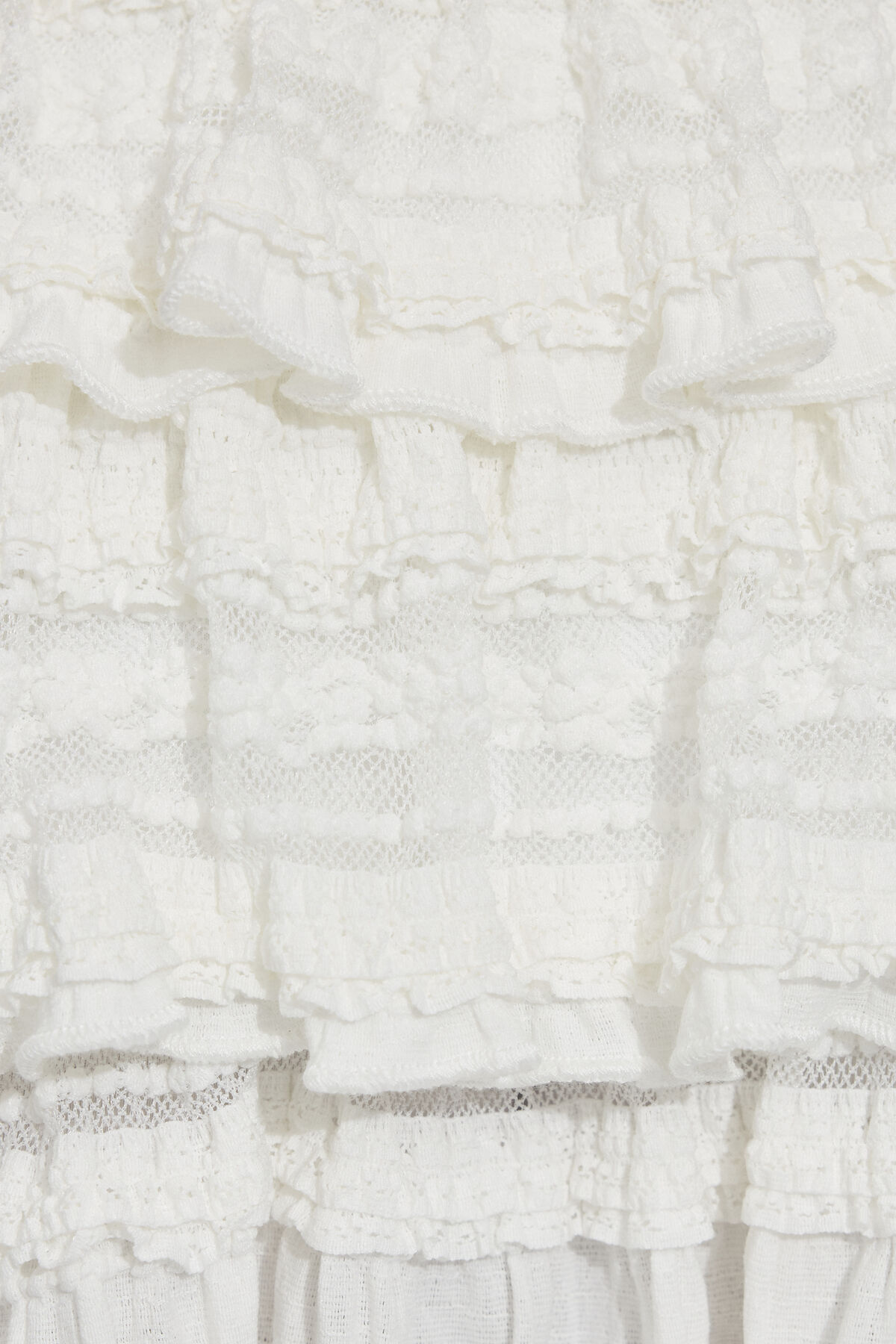 Drop Waist Ruffle Mini Dress White women – Never has a dress been so cute. Features Strapless Lace trim and ribbon appliqu é at neckline Tiered ruffled hem Double lined Size & Fit Fit: Fit and flare Length: Mini Model is wearing size S Materials & Care Content: 60% nylon, 20% recycled nylon, 20% spandex Care: Machine wash, cold Imported