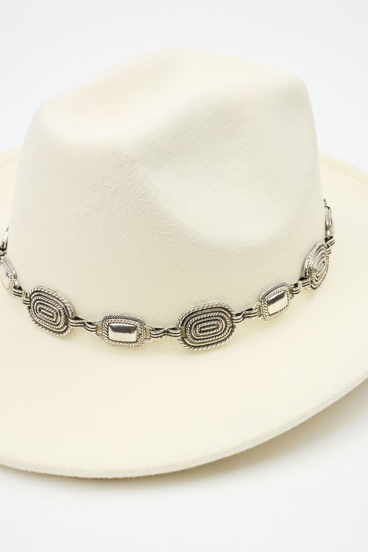 Felt Cowboy Hat White women – Your well deserved yee-haw moment is here! Features Antiquated hardware hatband Sweatband at interior Imported