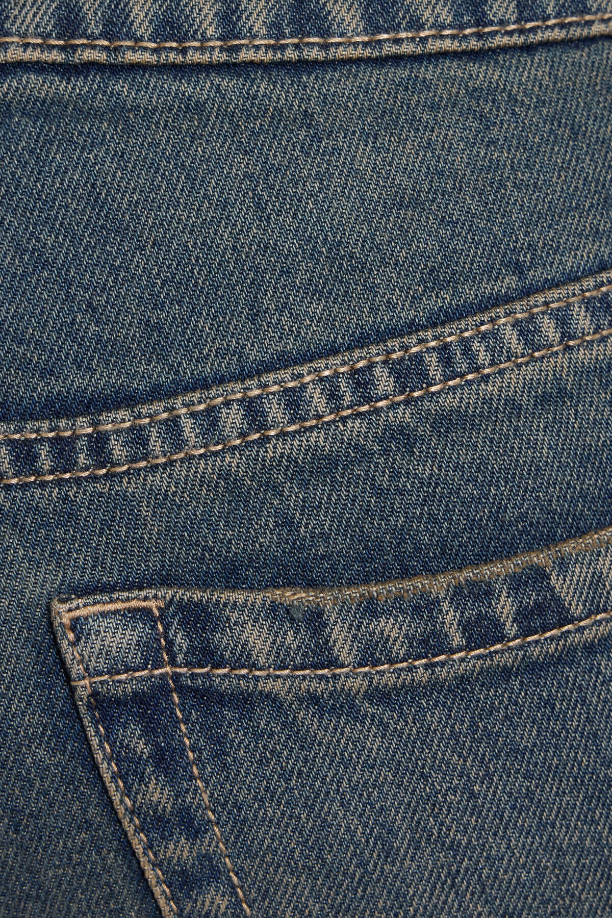 Mid Rise Bootcut Jeans Blue women – Bootcut is back! This classic look has a slim fit through the thighs and a subtle flare at the calf, elongating your legs and accentuating your figure. Features Five-pocket styling Zip fly Fading and distressed detailing throughout Size & Fit Fit: Bootcut Rise: 10.5″ inseam:=”” 32″=”” model=”” is=”” wearing=”” size=”” materials=”” &=”” care=”” content:=”” 84%=”” cotton,=”” 15%=”” recycled=”” 1%=”” lycra=”” care:=”” wash=”” cold,=”” inside=”” out=”” imported”=”