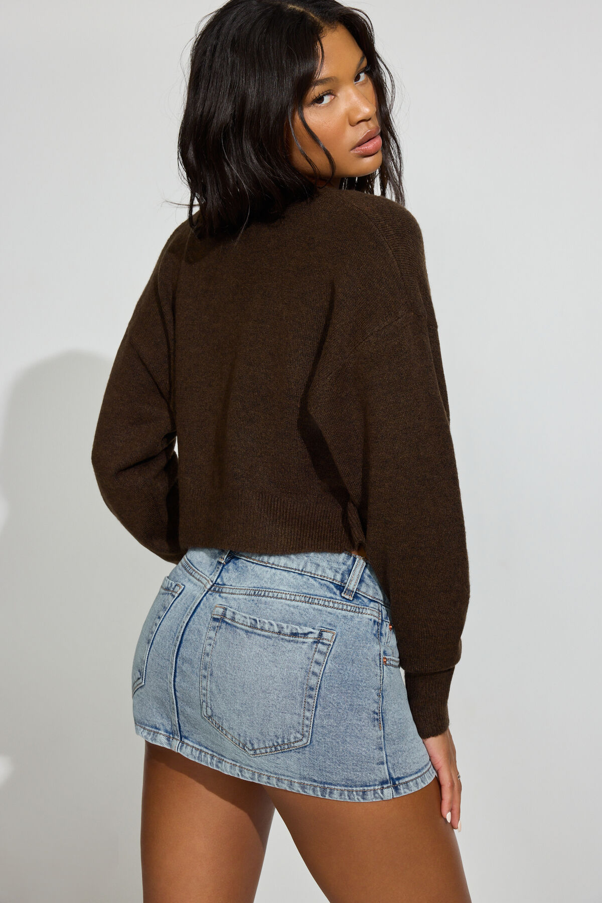 Renee Spongy Cropped Cardigan Brown women – This cardigan is lowkey so cute! Features Front button closure Rib knit crewneck, cuffs, and hem Size & Fit Fit: Fitted, stretch knit Length: Cropped Model is wearing size S Materials & Care Content: 54% acrylic, 41% nylon, 5% spandex Machine wash, cold Imported