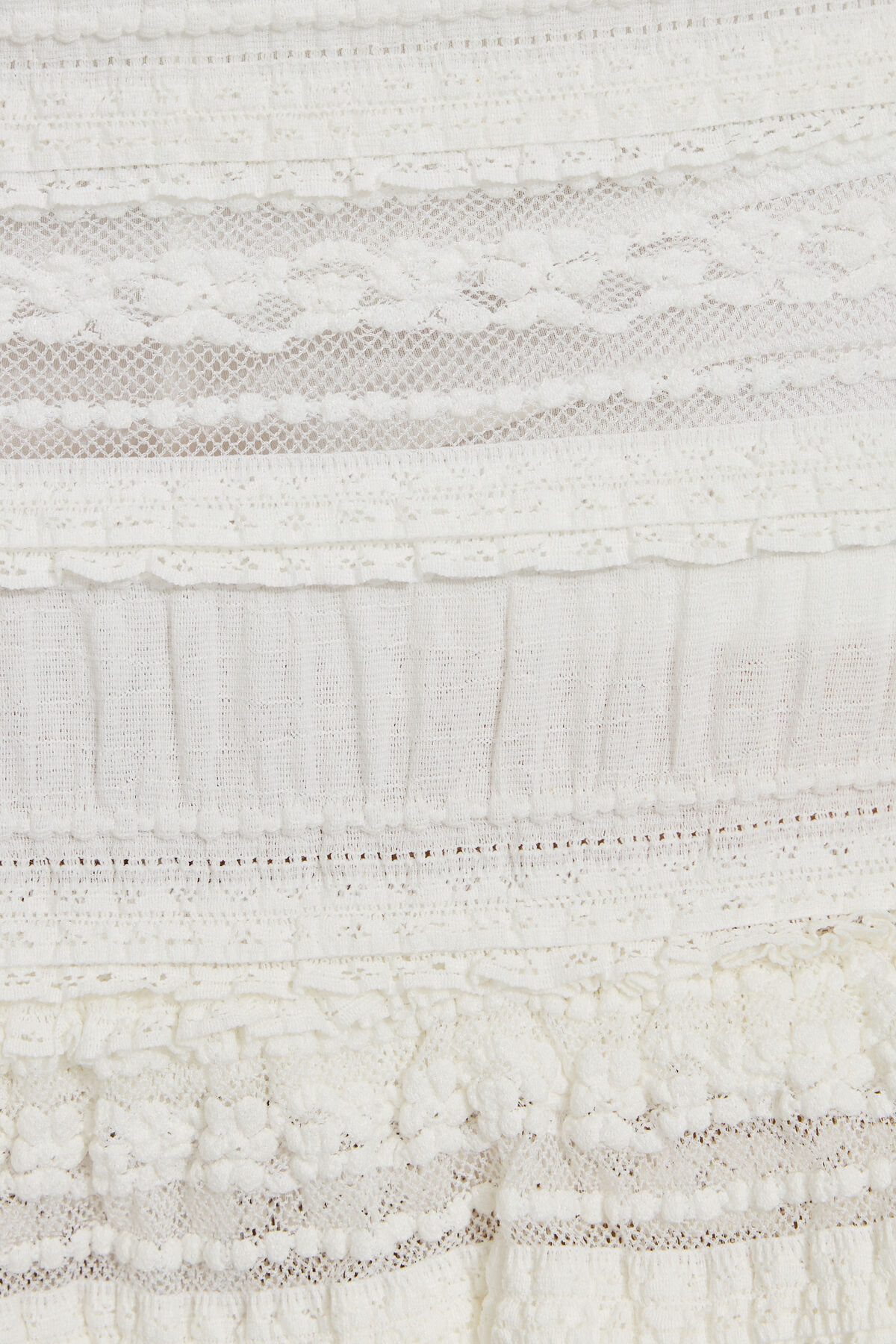 Ruffle Lace Skirt White women – Let’s go girls! This demands a cute top . Features Elasticized waistband Lace detailing throughout Shorts-style lining Size & Fit Length: Mini Model is wearing size S Materials & Care Content: 50% cotton, 45% nylon, 5% spandex Care: Machine wash, cold Imported