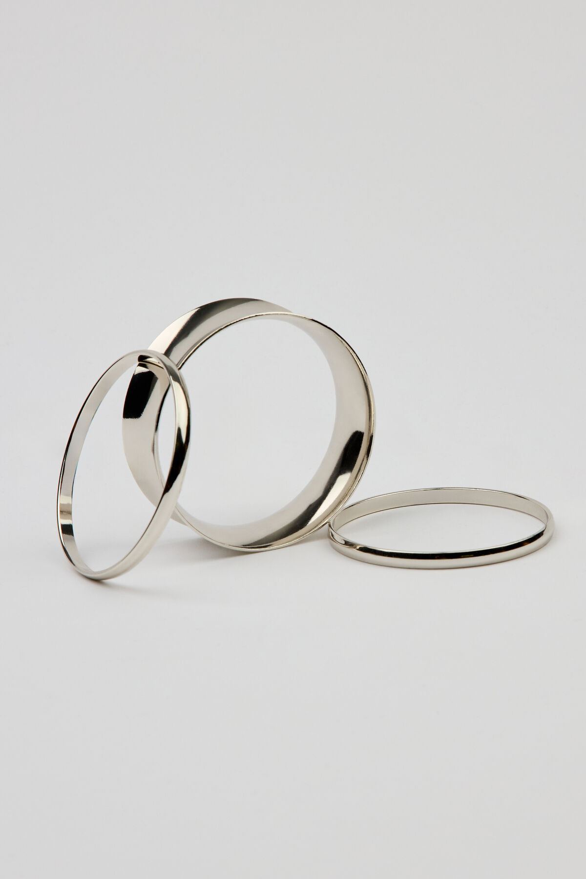 Set of 3 Convex & Wave Bangles Gray women – Local woman pleads guilty to excessive accessorizing. Features Set of 3 stackable bangles Metal costume jewelry All jewelry is lead, nickel, and cadmium free Imported