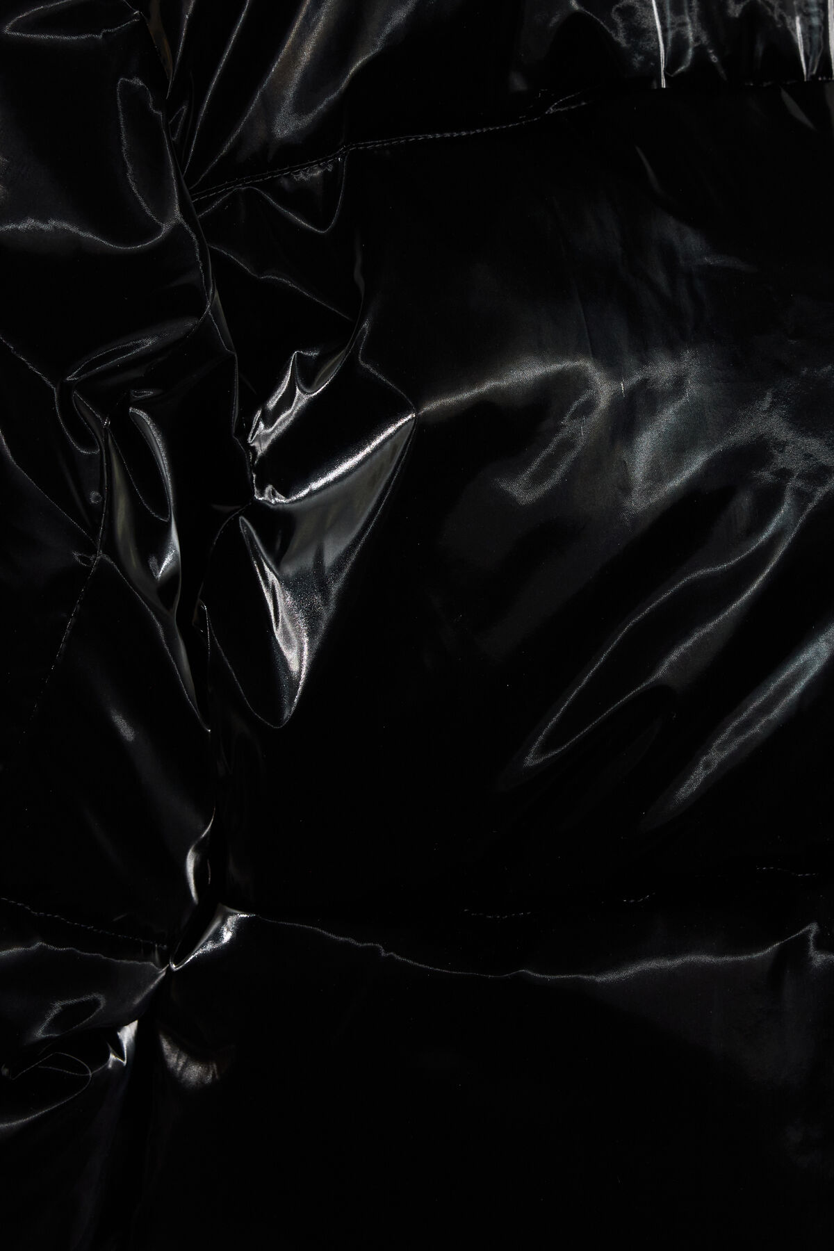 Shiny Puffer Jacket Black women – Bring the heat this winter in this shiny quilted puffer. Features Stand collar Front zip closure Welt pockets with snap closure Cozy fleece pocket lining for warm hands Storm rib cuffs to keep wind out Adjustable bungee-style drawstring at hem Lined Size & Fit Fit: Regular Length: Regular The model is wearing size S Materials & Care Water-repellant fabric Content: 100% polyurethane Care: Dry clean only Imported