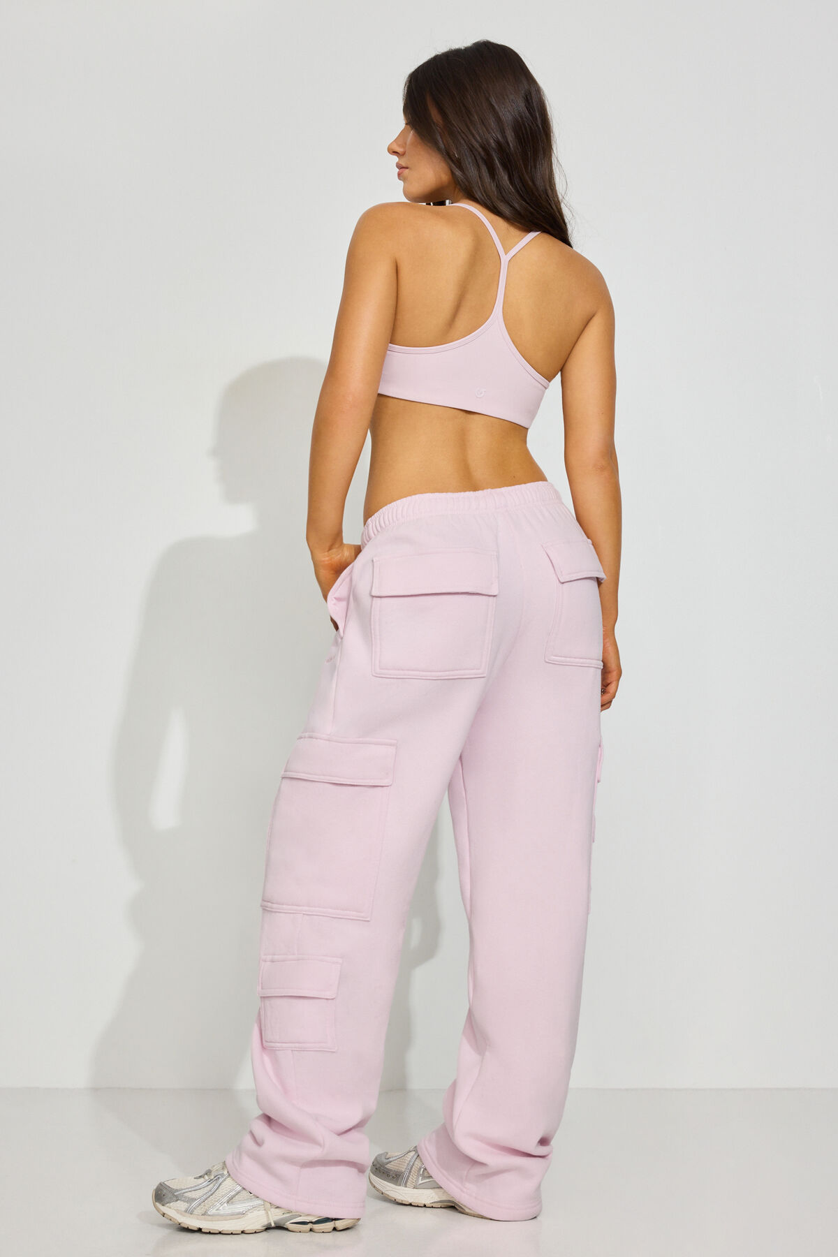 UltraFleece Cargo Sweatpants Pink women – The look of cargos , with the comfort of sweatpants … enough said! Features Drawstring at elasticized waistband Fleece interior 8-pocket styling Thick fleece construction Size & Fit Fit: Relaxed Rise: High Model is wearing size S Materials & Care Content: 75% cotton, 25% recycled polyester Care: Machine wash, cold Imported